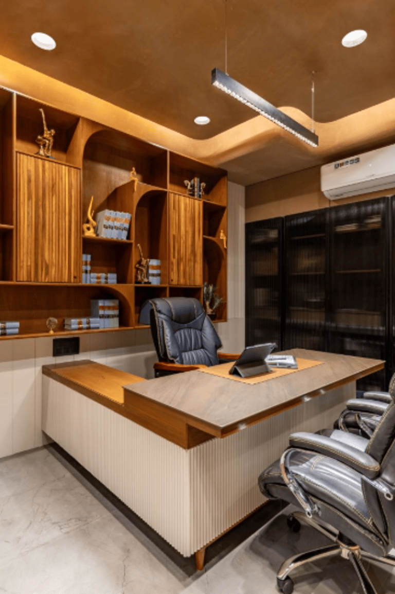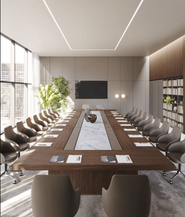 Executive Cabins & Conference Rooms ( Premium cabin designs, Glass partitions & acoustic solutions, Conference table setups, Elegant wall panelling )