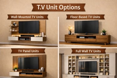 Enhance your living room with custom-designed TV units that combine aesthetics, storage, and functionality. At WallCraft, we craft TV units tailored to your space, ensuring a perfect blend of style and practicality.